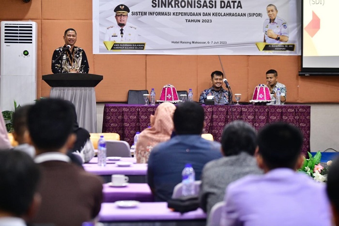 BERANDANEWS – Makassar, Dinas Pemuda dan Olahraga Provinsi Sulawesi Selatan menggelar Sinkronisasi Data Sistem Informasi Kepemudaan dan Keolahragaan (Sipor) Tahun 2023, di Hotel Raising, Makassar, Kamis-Jumat, 6-7 Juli 2023.