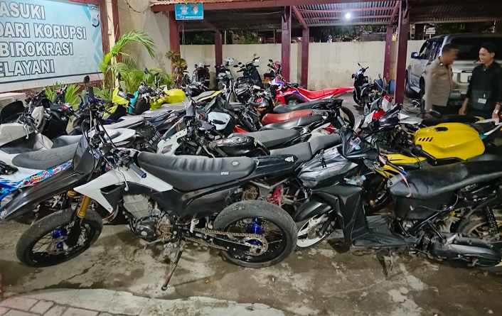 Tim 1 dipimpin Kanit Lantas Polsek Mariso Iptu Aswan melaksanakan patroli sekitar Jalan Rajawali dan mengamankan 4 (empat) Unit kendaraan roda dua dengan pelanggaran lalulintas dua diantaranya menggunakan knalpot brong dan dua kendaraan lainnya yang tidak dilengkapi dengan surat surat.
