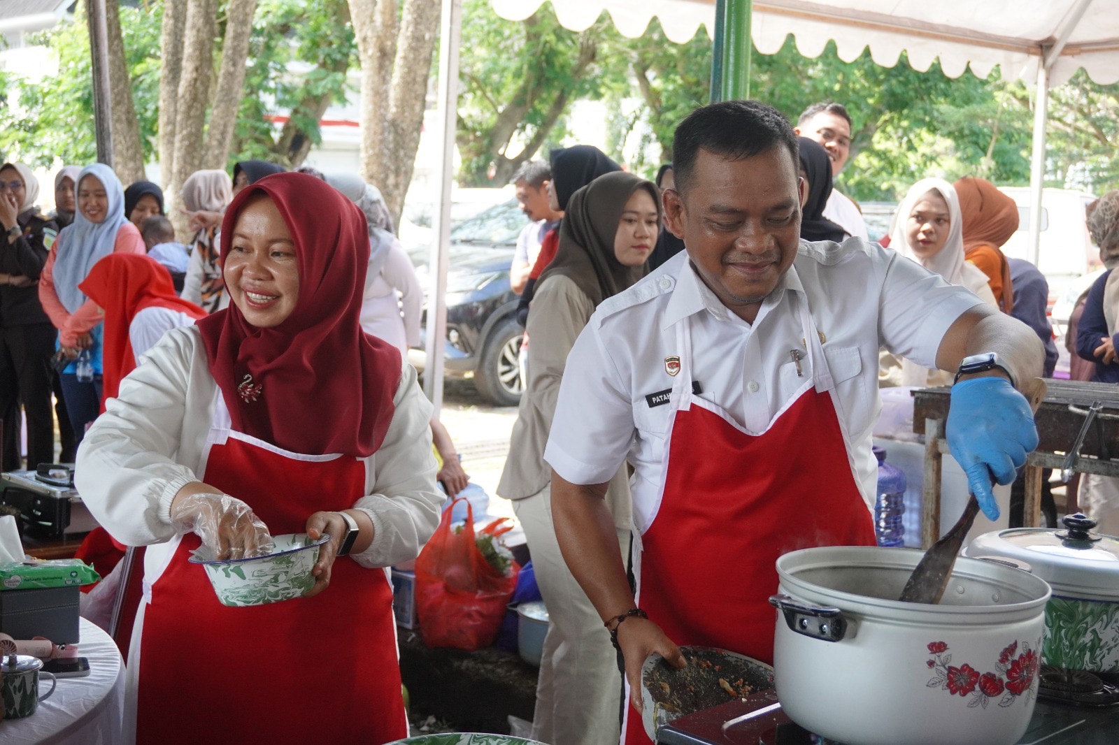 Lomba memasak kapurung yang diinisiasi oleh TP-PKK Kabupaten Luwu diikuti oleh pimpinan OPD dan Forkopimda digelar di Lapangan Upacara Kompleks Perkantoran Bupati Luwu, Rabu (13/8/2025).