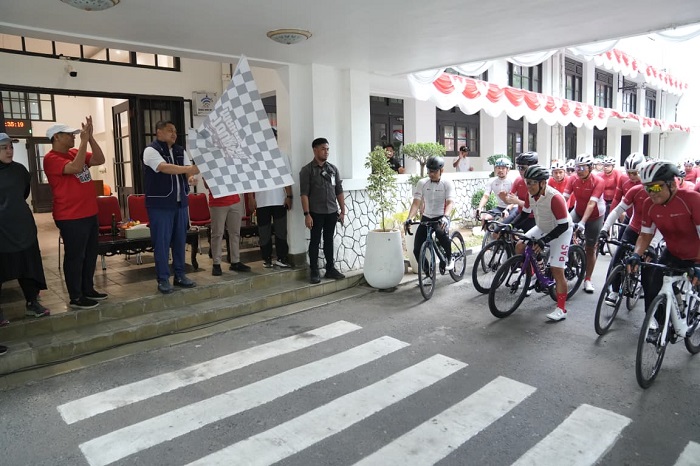 BERANDANEWS – Makassar, Wali Kota Makassar, Munafri Arifuddin, melepas ratusan pesepeda peserta Merdeka De Barru 2025 di halaman Balai Kota Makassar, Ahad (24/08/2025) pagi.